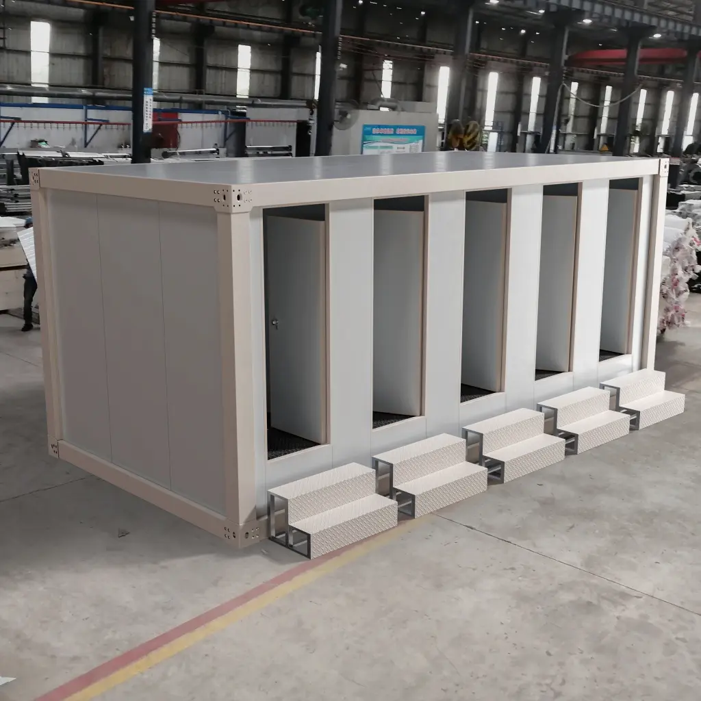 High-capacity prefab sanitary container with 5 independent cubicles and steps. Perfect for outdoor events, campsites, and parks.