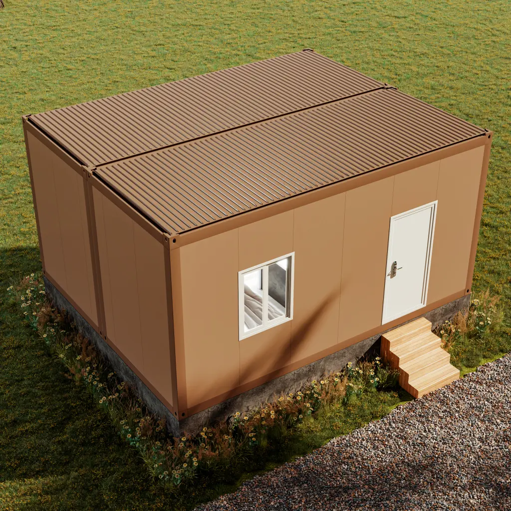 Compact prefab container home with bedroom and bathroom. Ideal for site offices, worker dorms, and tiny living.