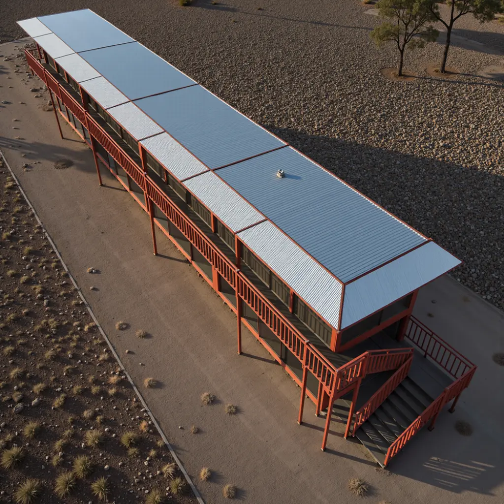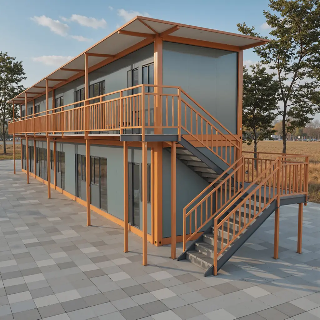 Heavy-duty steel frame 2-story prefab building for dorms, schools, and offices. Durable, rapid assembly, and scalable.