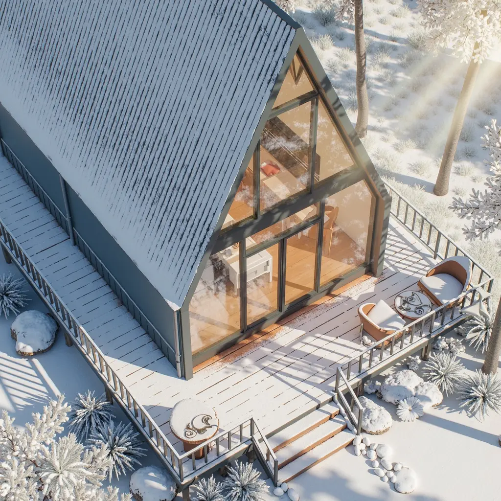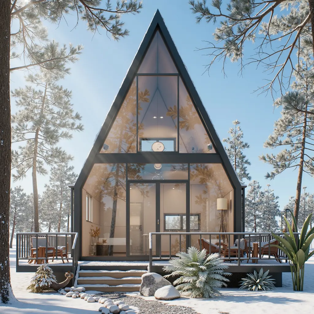 High-durability steel frame A-frame villa with panoramic glass. Perfect for luxury resorts and modern living. Rapid assembly.