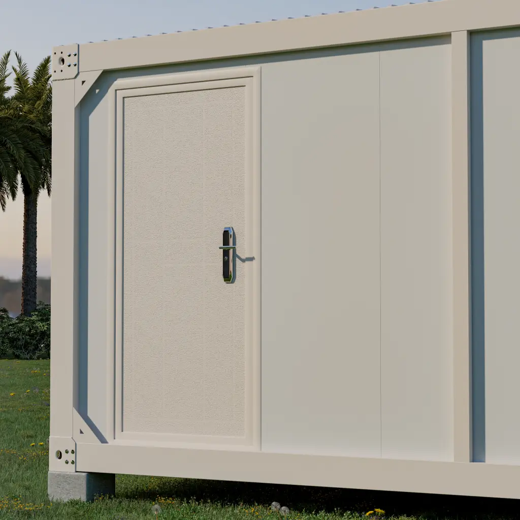 Modern prefab container for homes, offices, and studios. Durable, secure, and customizable minimalist design.