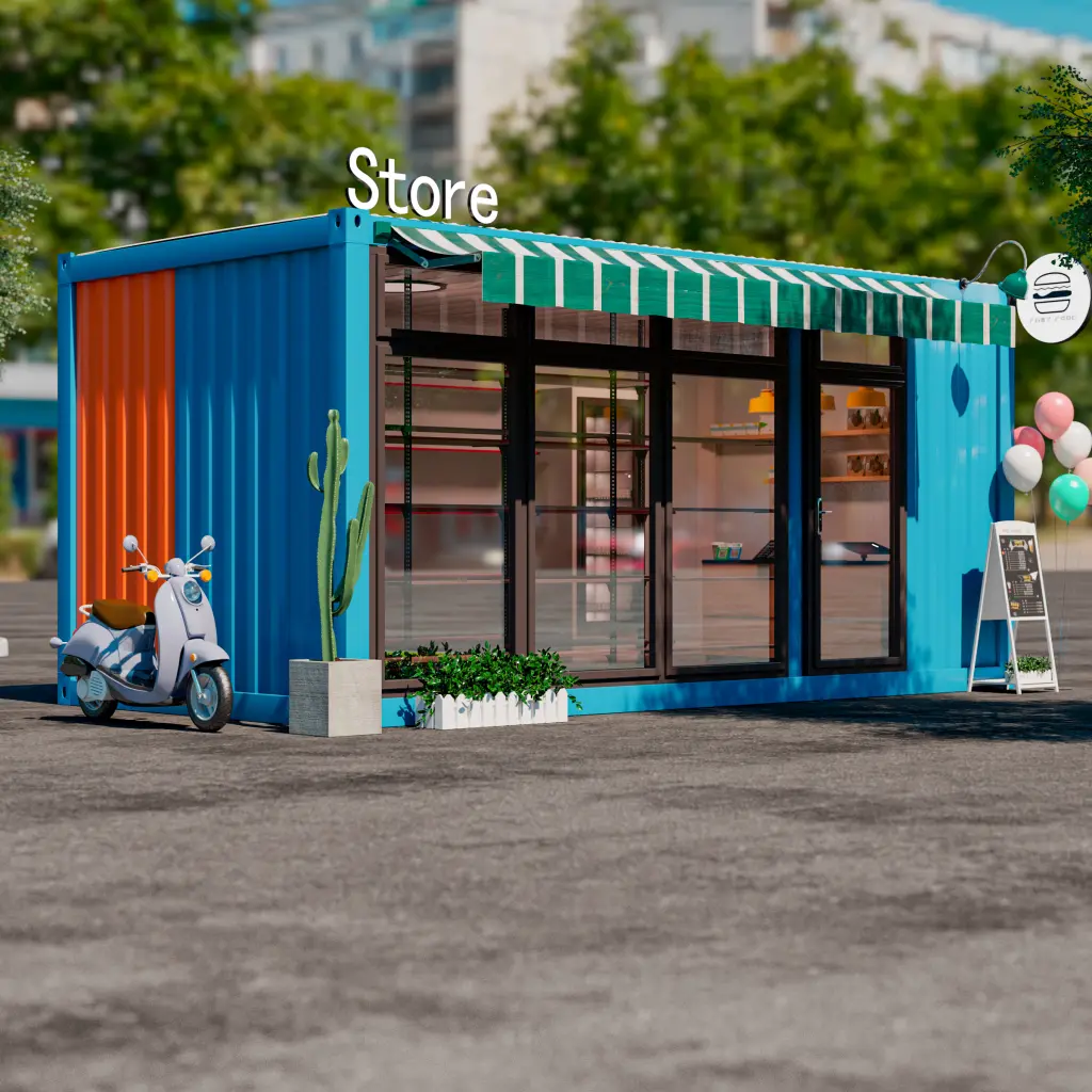 ModularDwell diseña vibrantes tiendas pop-up y cafeterías móviles. Personalizables y perfectas para retail o comida callejera.