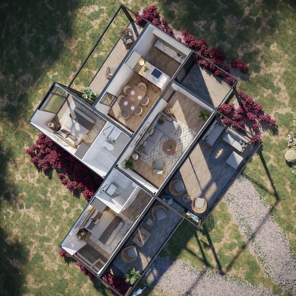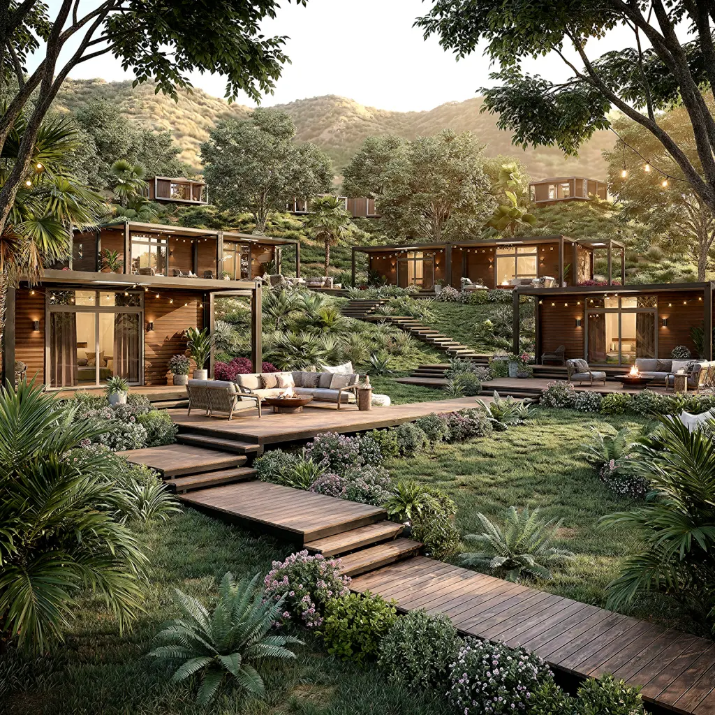 ModularDwell ofrece lujosas casas modulares de madera y cabañas de vacaciones. Diseño sostenible con amplias terrazas.
