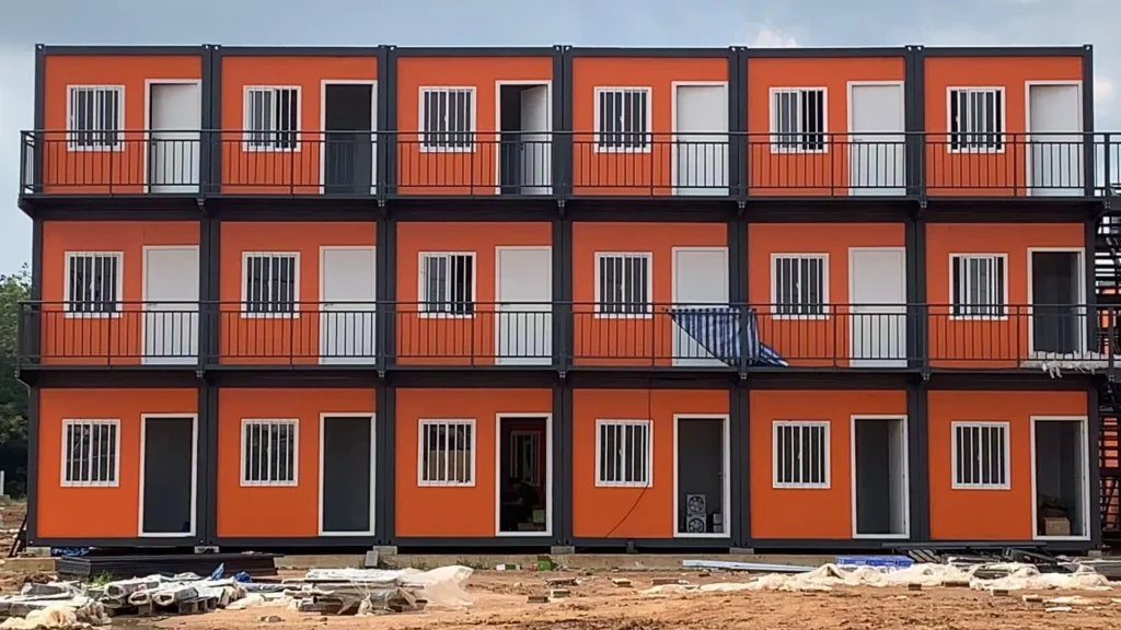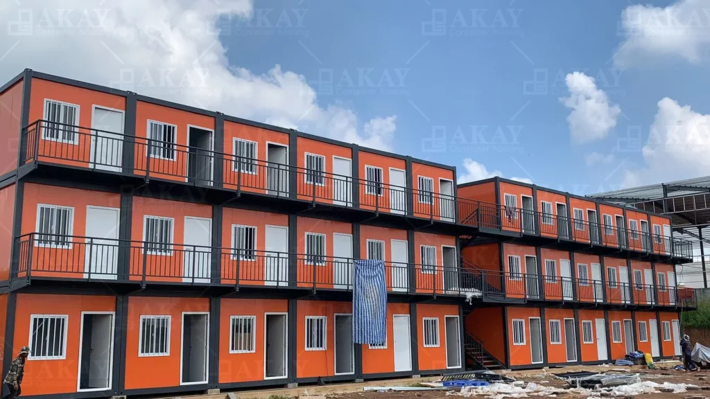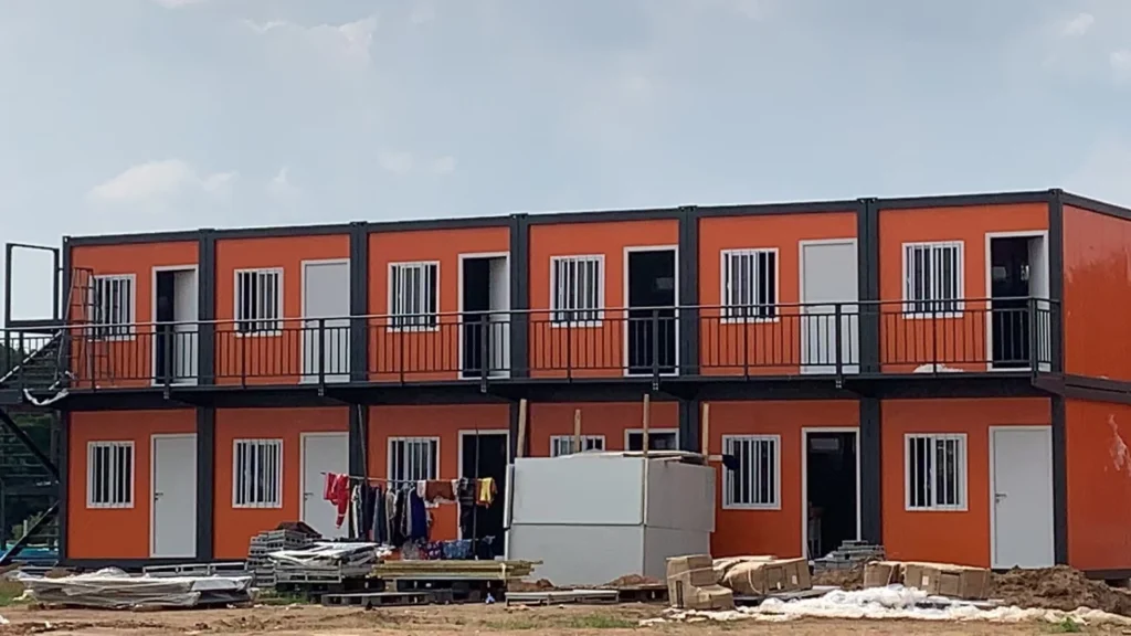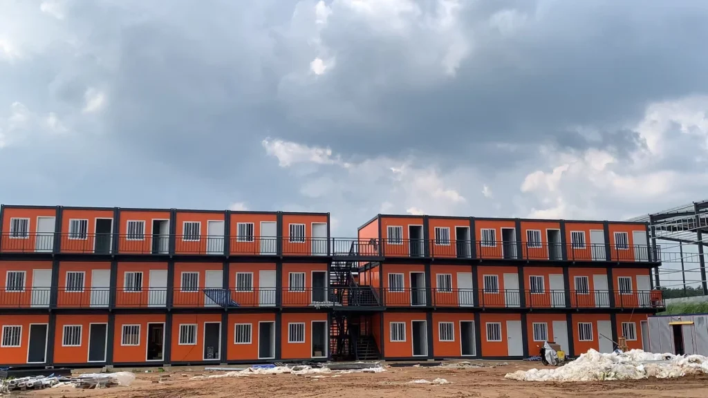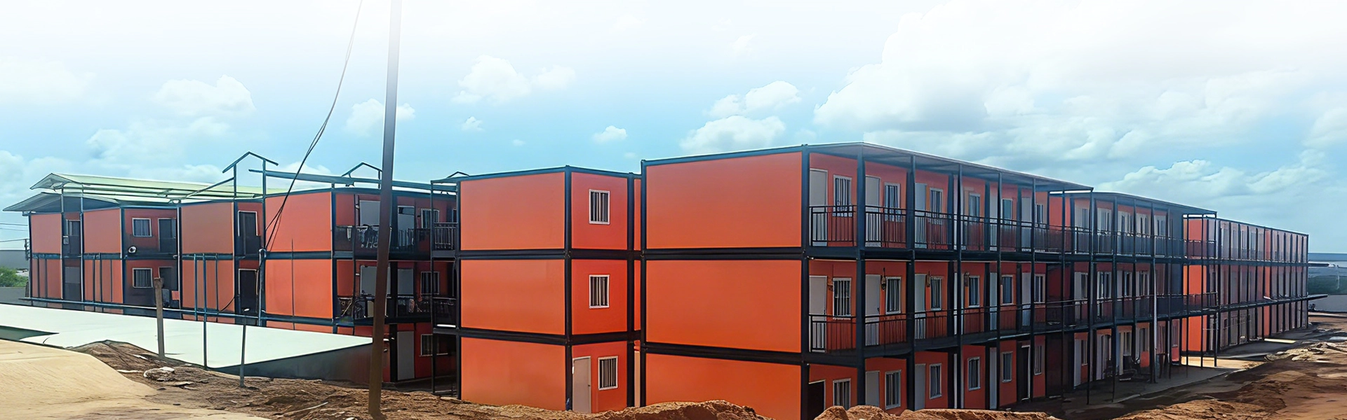 This project features a large-scale, three-story modular dormitory complex designed to provide safe and comfortable housing for onsite personnel. By utilizing a stackable detachable container system, the building maximizes land use efficiency while offering a professional, organized living environment.