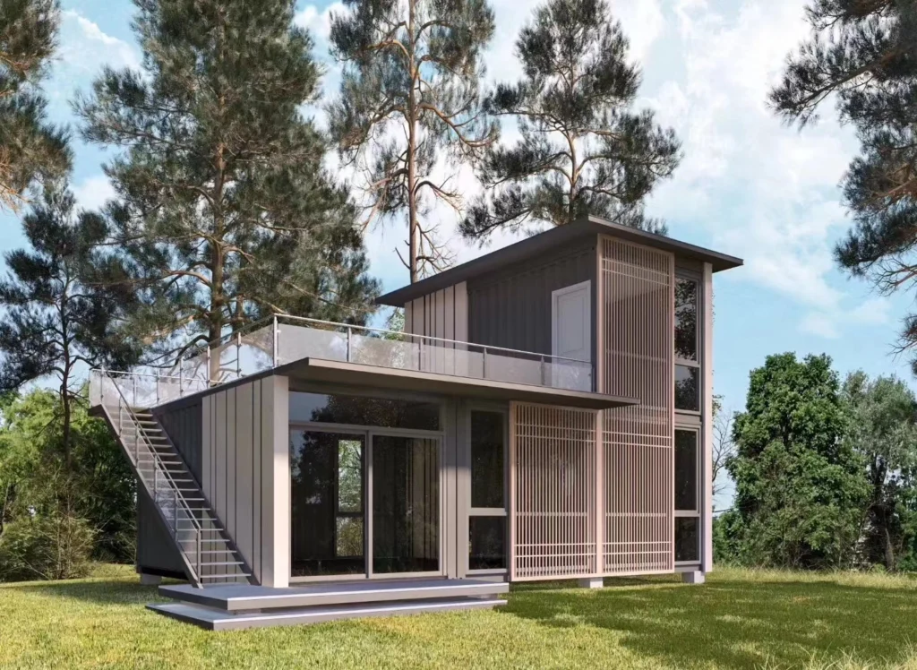 Modern 2-Story Modular Container Villa with WPC Louver Facade