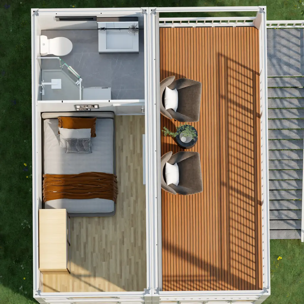 | installation speed | Folding Container: 2-3 people & 10-15 mins / unit Flat Pack: 3-4 people & 3-4 Hours / unit Detachable: 3-4 people & 0.5- 1 Day / unit Pre-assembled: Only a crane & 30 mins / unit |